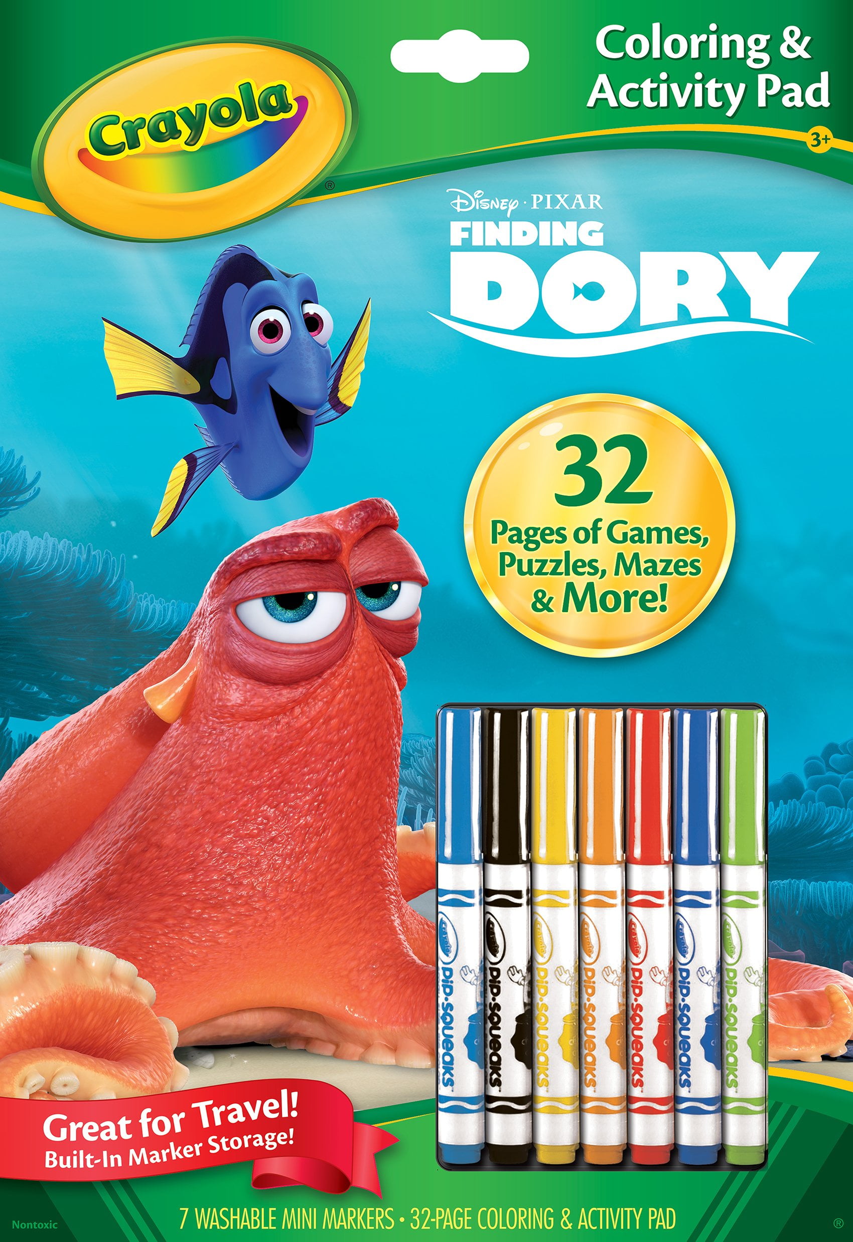 The Crayola Disney Cars Coloring and Activity Pad is packed with 32 pages of coloring sheets and fun activities like mazes and matching games. The Disney Cars-themed activity book comes with seven Crayola Pip-Squeaks markers in bright, bold colors. The non-toxic markers feature a washableformula that easily washesoff hands and most fabrics.