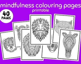 Wild Animals Mindfulness Colouring Book - kiddycharts.com Each of the kids mindfulness colouring pages are relatively simple, with clear lines, and basic backgrounds, so that your children don't get too frustrated. The adult wild animals colouring pages, are that little bit more difficult, with some gorgeous intricate swirls, and patterns to work your way...