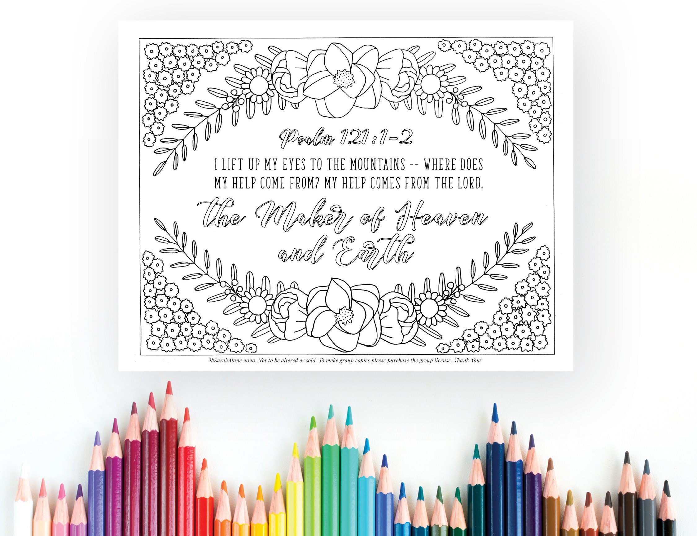Maker of Heaven and Earth, Coloring Page, Psalm 121:1-2, Printable Coloring, Instant Digital Download, Christian Coloring Sheet